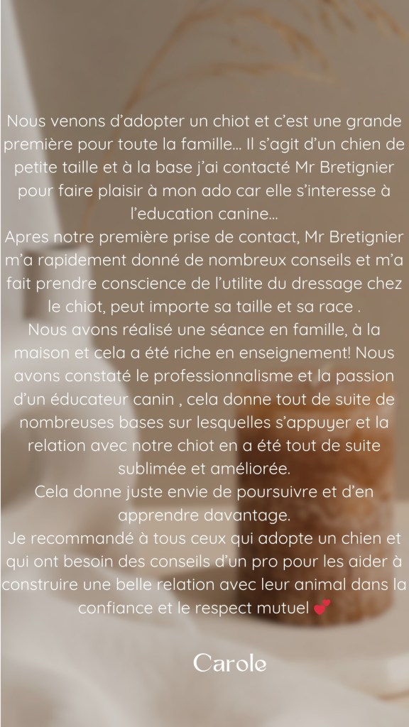 Au travers de cet article j’espère sensibiliser tous les propriétaires et futurs propriétaires de chien ou de chiot sur l’importance de l’éducation canine et de son cadre relationnel.
